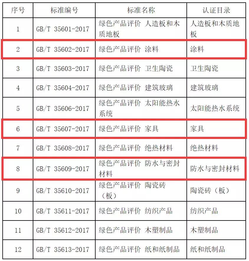 涂界记者注意到,涂料、防水与密封材料产品将分别按照国家标准《GB/T 35602-2017绿色产品评价 涂料》、《GB/T 35609-2017绿色产品评价 防水与密封材料》进行认证。
